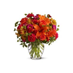 Stunning selection of tiger lilies, alsromeria, mini carnations, and spray roses