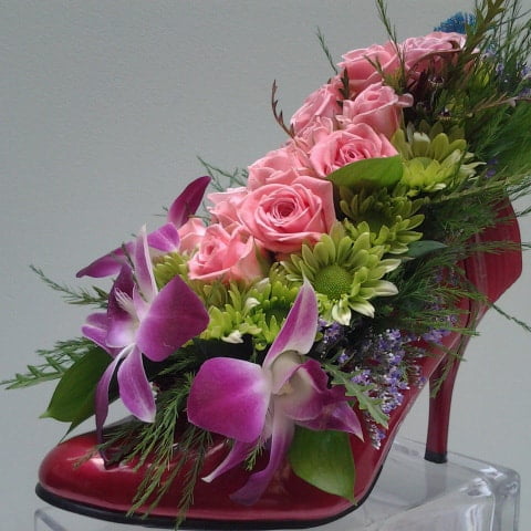 Flowers artistically arranged in a “real’ shoe!