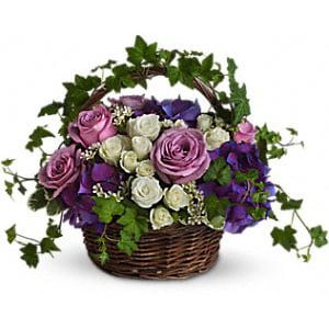This beautiful basket of hydrangeas, greens and roses is the perfect way to honour the life of a loved one.