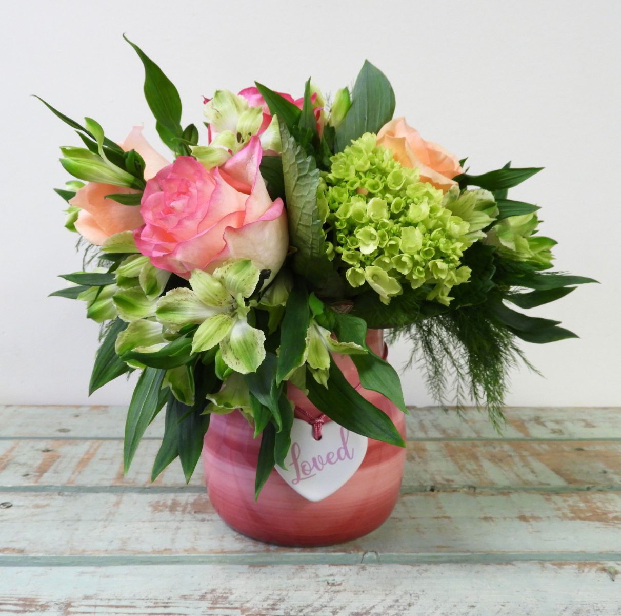 This soft pastel arrangement of roses, alstroemerias and hydrangeas surrounded by luscious greens will show your loved ones that, in your eyes they are perfect.