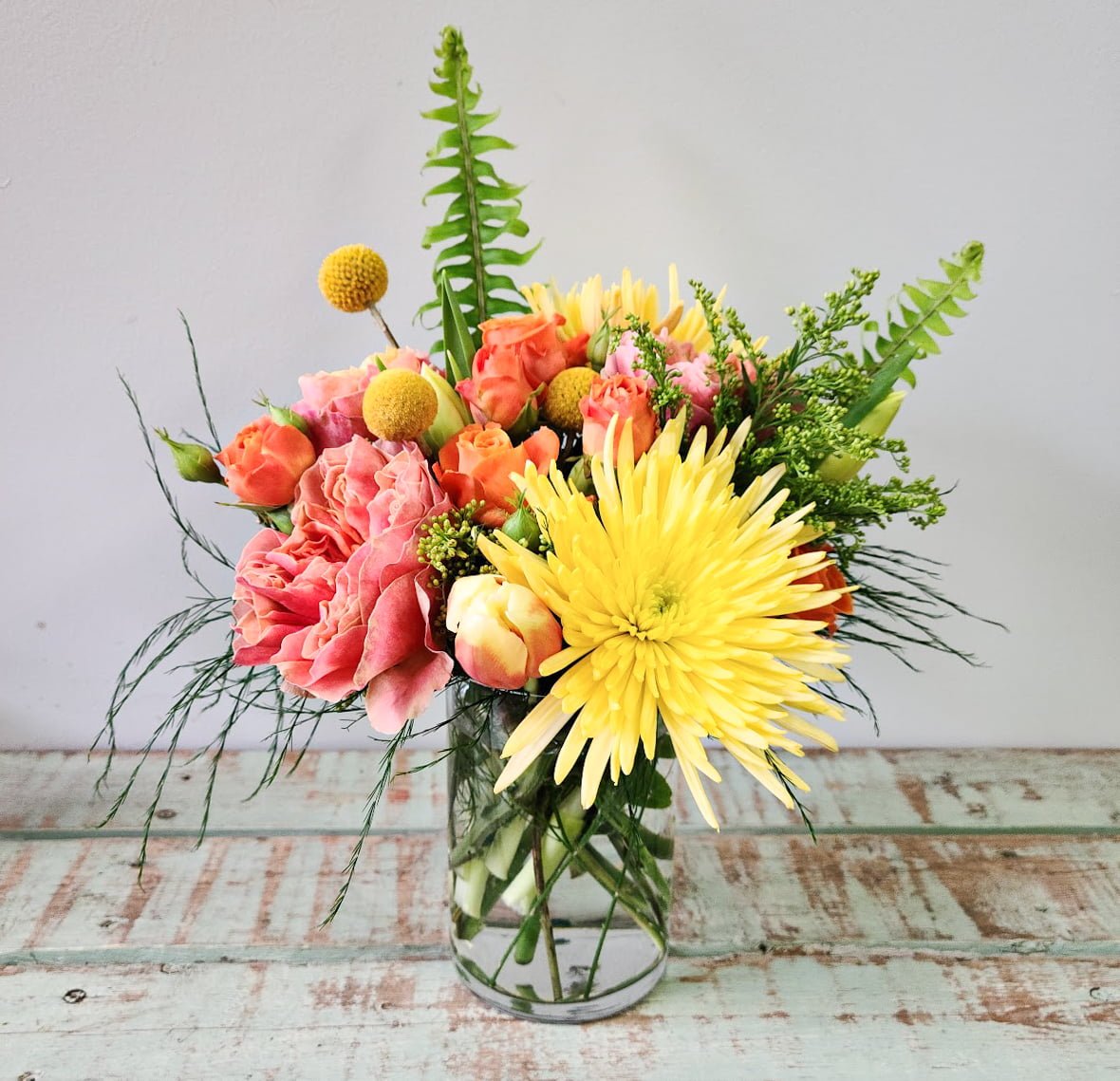 This bright and bubbly fresh arrangement is the perfect way to light up anyone’s day.