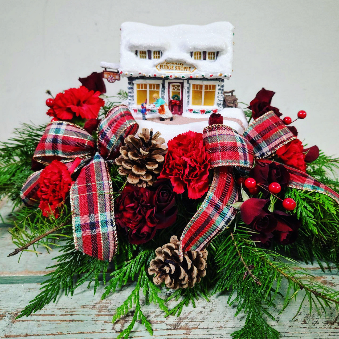 Indulge your sweet tooth in the newest Thomas Kinkade arrangement. This festive and fun sweet shoppe is the perfect centrepiece for any holiday table.
