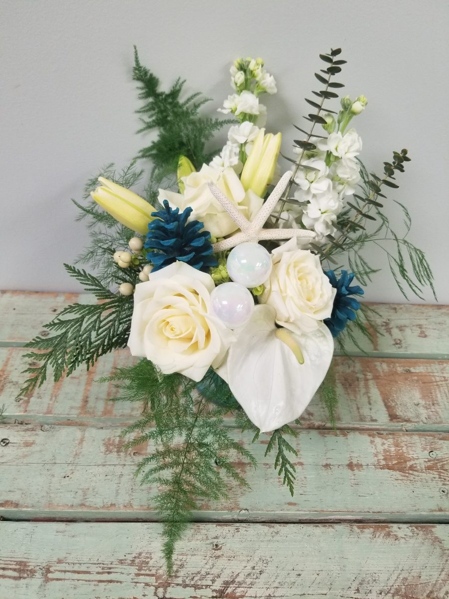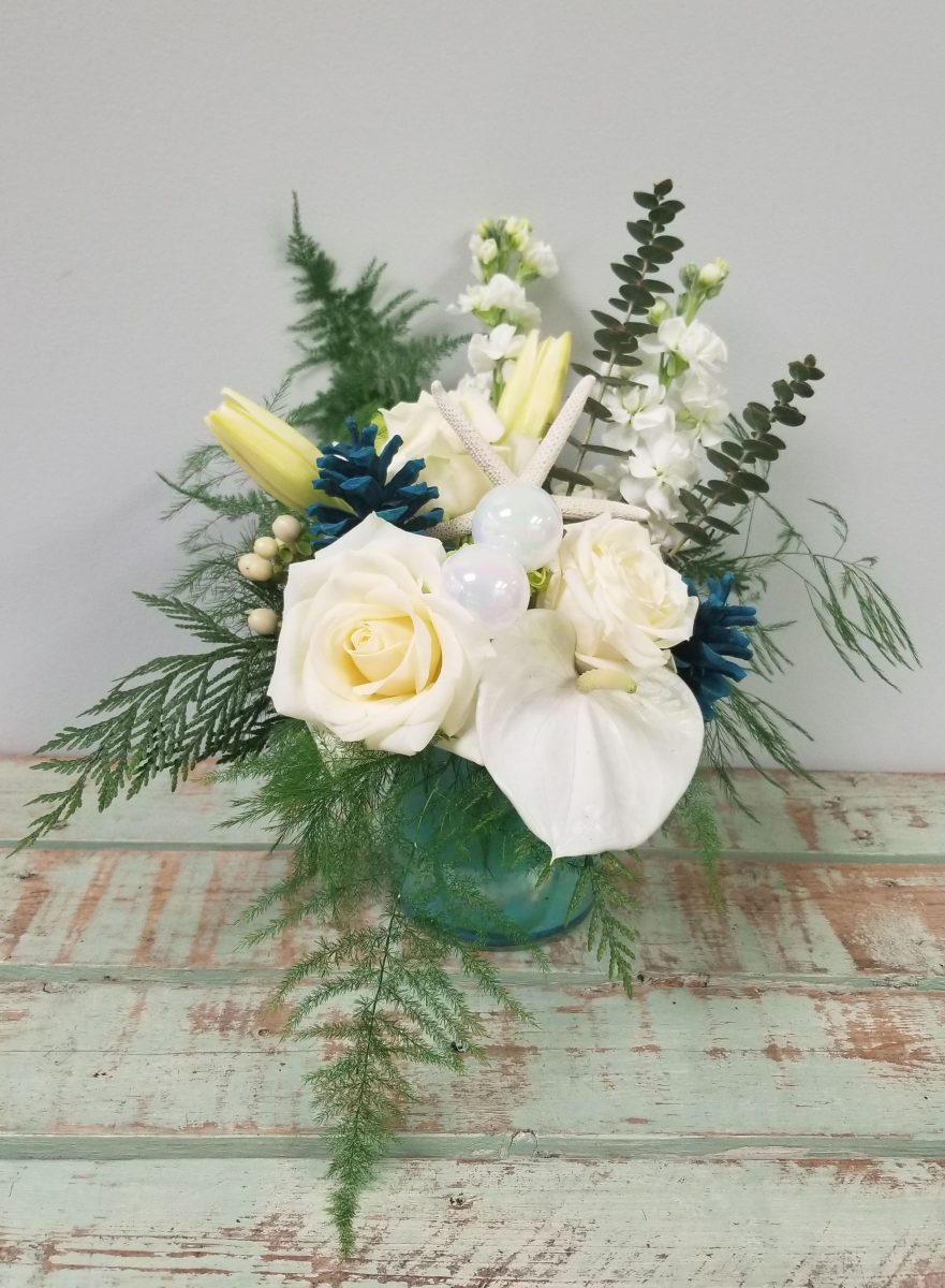 Let’s face it, not everyone loves snow. Dream of a winter tropical get away with this contemporary West Coast tropic-infused arrangement