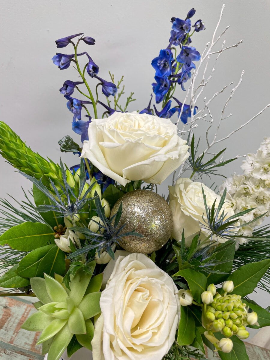 An arrangement fit for the Snow Queen herself. Bright white roses mix beautifully with fresh west-coast greens to make this winter wonderland masterpiece!